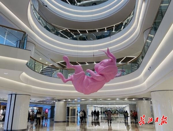 武商MALL内,粉红兔艺术装置惹眼。记者赵歆 摄