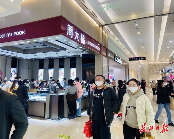 “这个周末商场活动不少,还有许多新的打卡拍照点位。”12月24日19时,记者来到武商MALL,商场门口新亮相的灯光打卡装置吸引了不少市民驻足,走入商场内部,巨大的粉色兔造型艺术装饰同样十分惹眼。被吸引拍照打卡的市民张女士说有段时间没有逛街,这次出来看到吃、喝、玩的上新不少,太热闹了。不仅有打卡的新鲜感,市民购物热情同样高涨,在武商MALL一楼国际名品区,记者看到不少商户门口排起等候队伍;二楼某数码品牌门店里人头攒动,尤其是新上市电子商品吸引了不少年轻人体验试机。