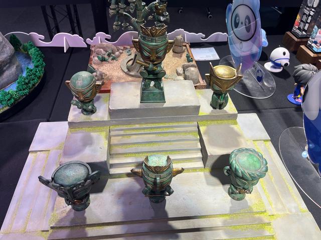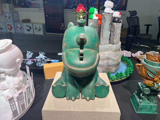 在现场,记者也注意到有不少的潮玩融入了四川元素,三星堆的太阳神鸟遇上成都博物馆的镇水石犀、陶徘优俑形象的泡菜坛娃娃……珍贵的文物以呆萌的形象出现,离我们距离也似乎更近了。