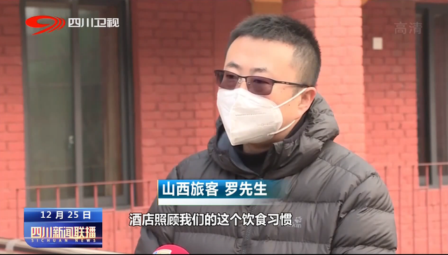 山西旅客 罗先生:酒店照顾我们的这个饮食习惯,给我们一个清淡的饭菜,有时候也会配一些面条给我们吃,这块我们感觉特别人性化,也特别贴心。我们来这边居住,各方面也比较经济实惠吧。