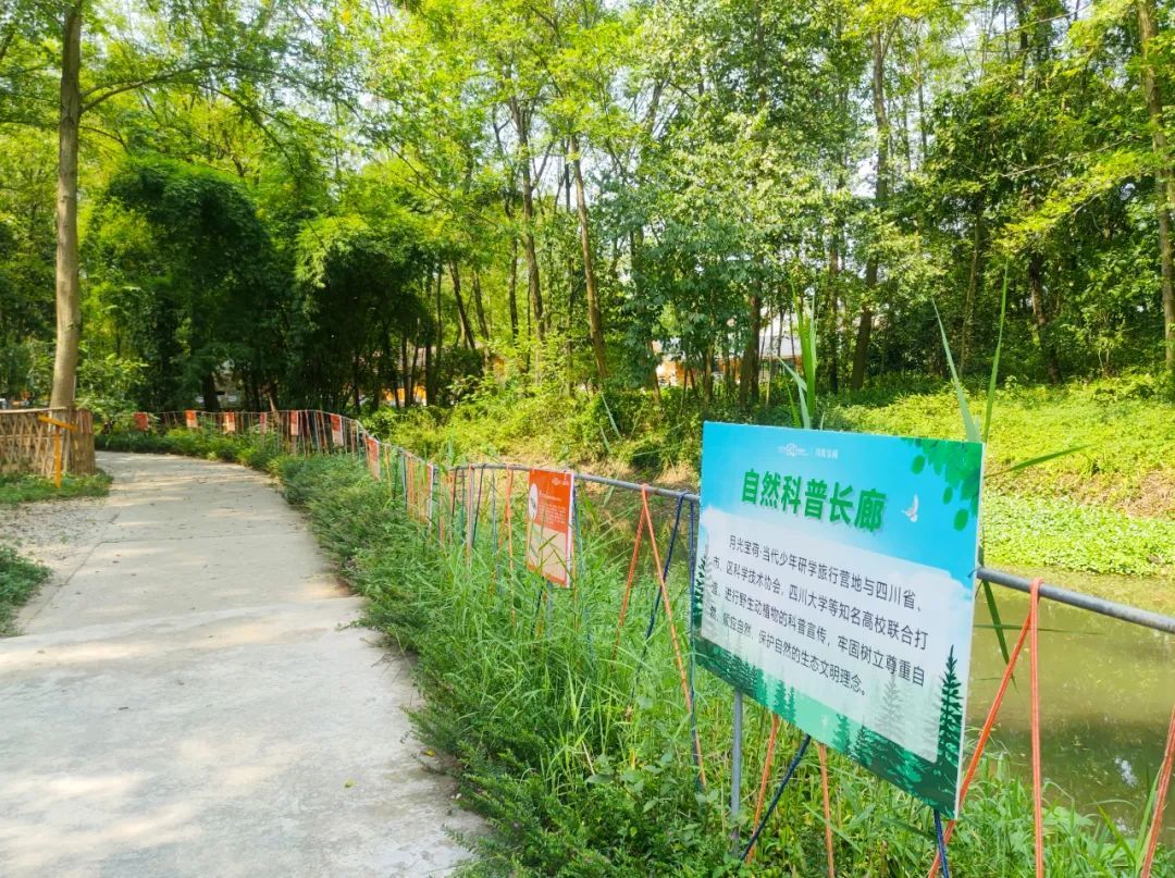 ● 自然科普长廊:营地与成都市、新津区科学技术协会联合打造,进行野生动植物的辨识和科普宣传,培养学生树立尊重自然、保护自然的生态文明科普理念。