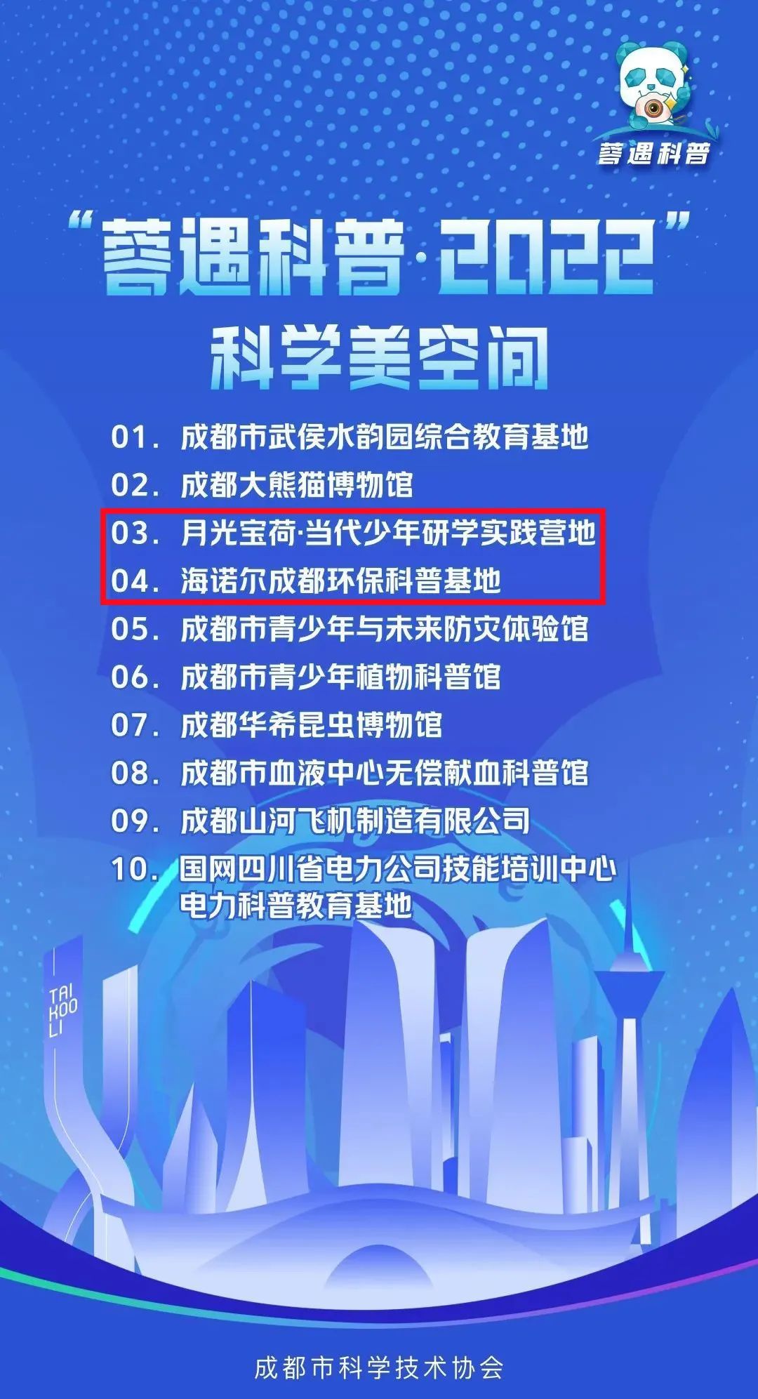 位于新津的月光宝荷·当代少年研学实践营地、海诺尔成都环保科普基地成功上榜“科学美空间”榜单,两个点位均作为社会力量,积极参与到科普教育中,形成了各具特色的热爱科学的良好氛围。