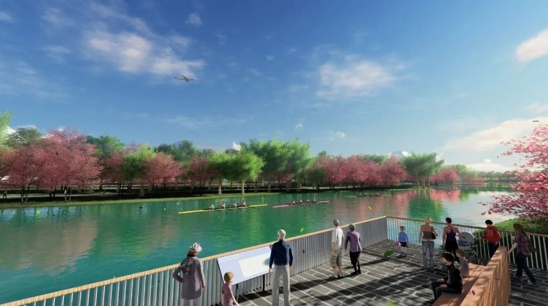 据了解,临空区积极贯彻落实新发展理念,始终坚持绿色低碳发展理念,中央公园整体规划面积361公顷,将以“国门画廊、时代印章”为目标,建造一个蓝绿交织的生态引擎、打造一条无界内外的滨水绿岸线、塑造一片自然纯享的运动森林、构建一处多元融合的文化栖息地。未来,中央公园(中心公园)将先后打造体育场馆、户外营地、餐饮配套等设施,挖掘生态休闲、文化体育、生活配套、家庭配套、青少年活动发展潜力,展现新国门生态地标的活力形象,为高品质临空经济区的“产城建设”持续赋能。