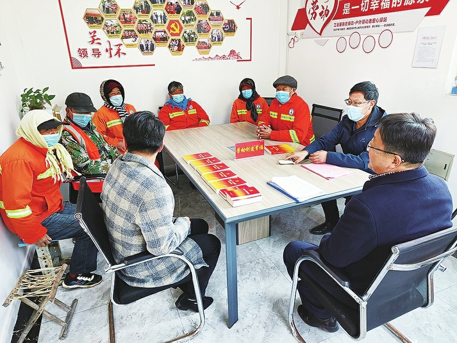 近日,山海天旅游度假区宣讲团成员在金沙滩户外劳动者驿站宣讲党的二十大精神。