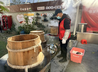 在温州,有冬至节“吃麻糍长一岁”的说法,滨江街道杨府山社区 “麻糍”开道,开展 “温暖十二月”垃圾分类宣传活动。活动现场,围观居民聚成一团看着志愿者们热火朝天制作麻糍,蒸糯米倒麻糍,裹上黄豆粉,撒上芝麻跟桂花,瞬间空气弥漫着糯米的香甜,大家忙得不亦乐乎。随后,社区工作人员将一份份热腾腾递给来往的居民,居民们吃着麻糍,笑容满溢、频频点头;社区工作者看准时机为现场的居民发放垃圾分类宣传三折页,并认真讲解垃圾分类知识,倡导大家享受美味的同时也要做好垃圾分类,积极参与到垃圾分类的行动中来。