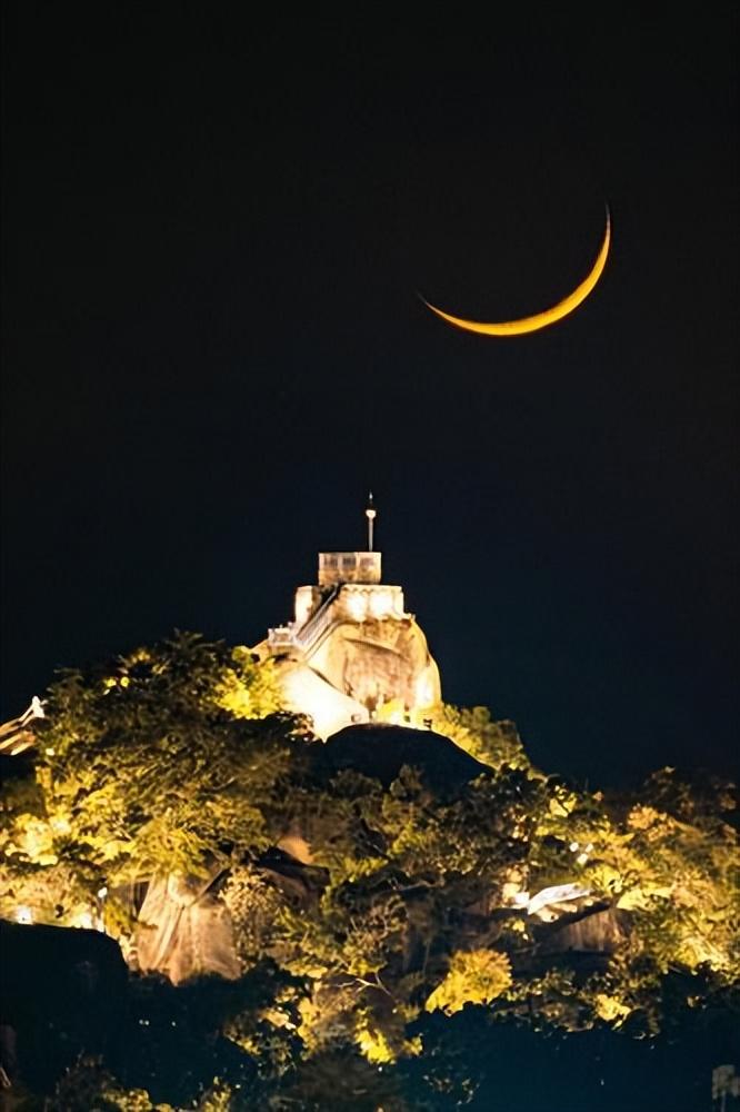 农历初三的月牙从日光岩旁缓缓落下。(厦门日报记者 林铭鸿 摄)