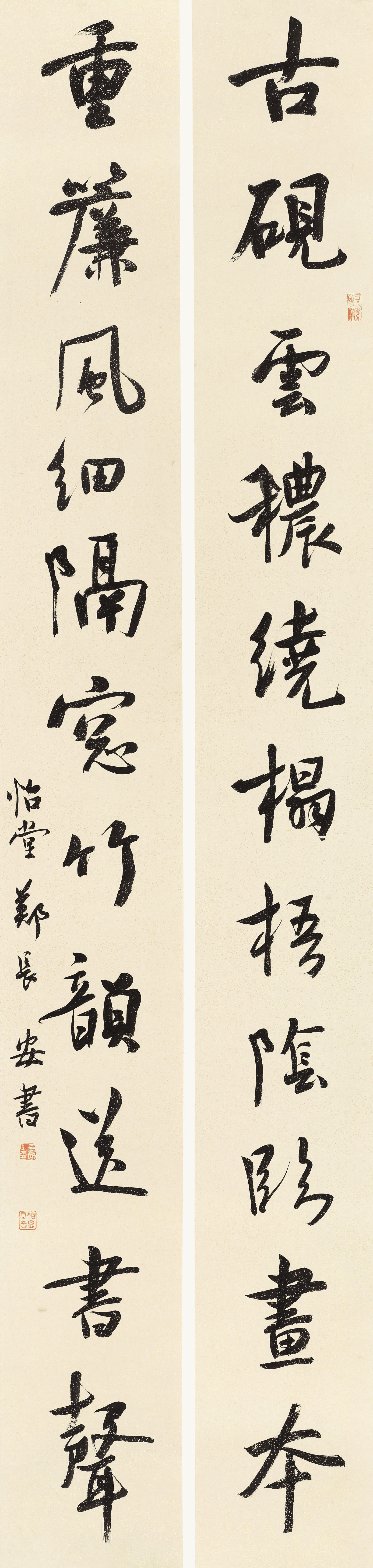 古砚 重帘 联 228cm×26cm×2