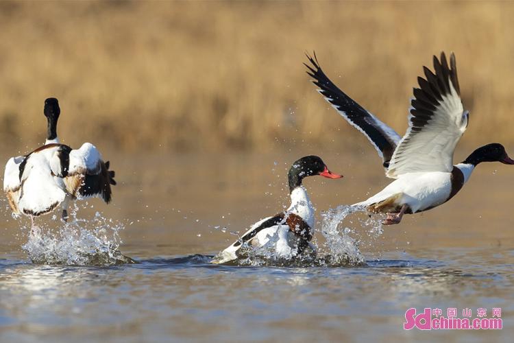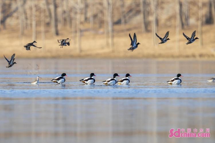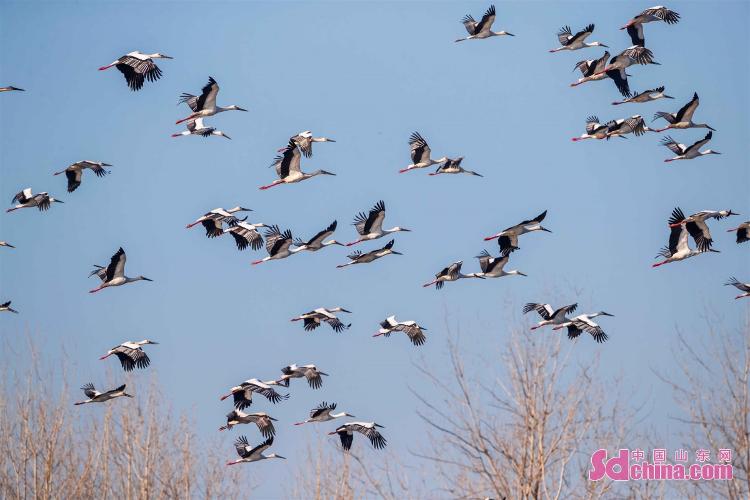 近日,成群候鸟飞临山东省临沂市郯城县沂河水域越冬,给静谧的河水增添了生机与活力。近年来,郯城县加大对沂河生态的修复、保护力度,河水变清,鱼草丰美,吸引了东方白鹳、翘鼻麻鸭等珍稀候鸟前来越冬。