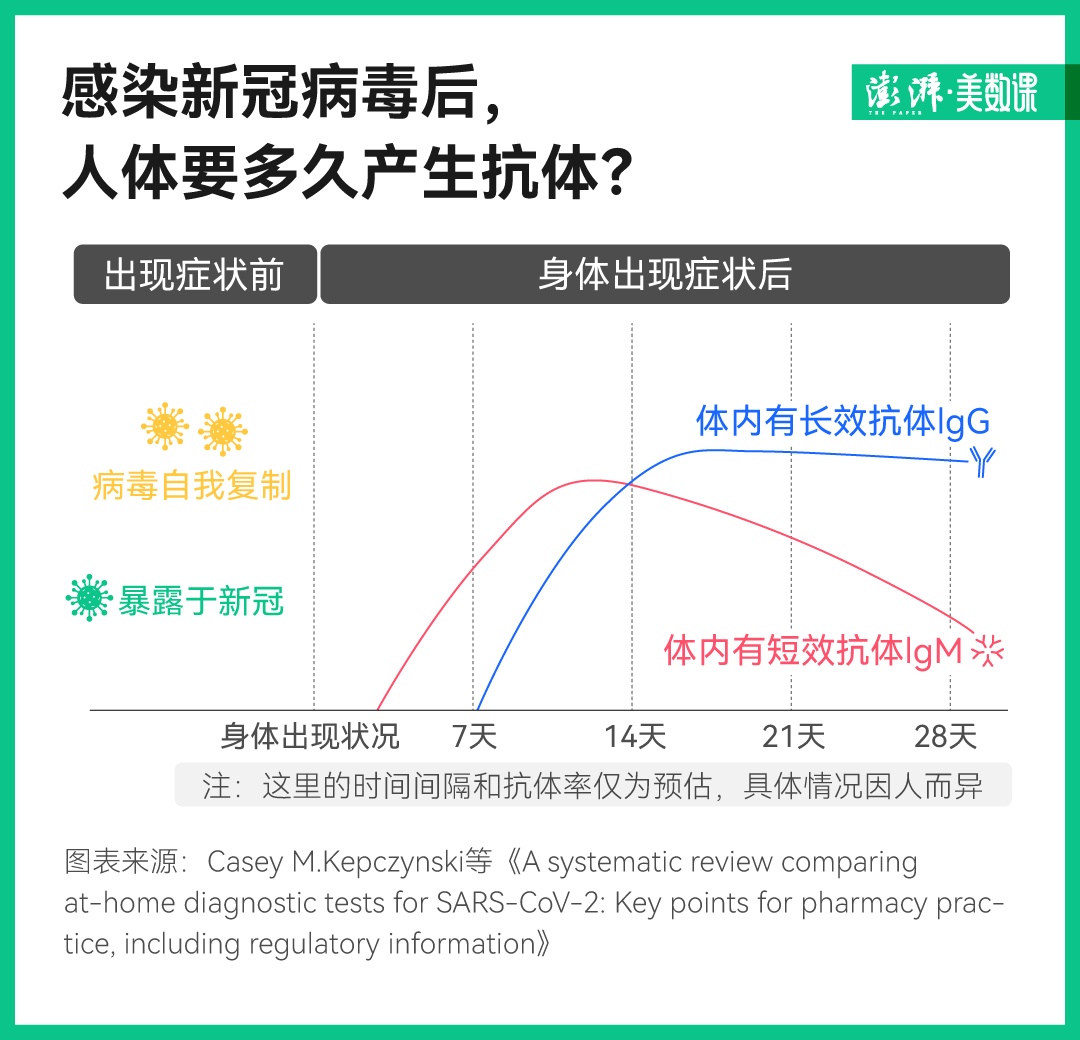 可实际上,多项研究指出,当我们身体出现症状 2 天左右,抗体就已产生,否则我们的抗原检测也不会有反应。只是我们人体先产生的是短效抗体 lgM,晚几天才是长效抗体 lgG,而后者一般需要 2 周左右的时间才能达到一个较高水平。
