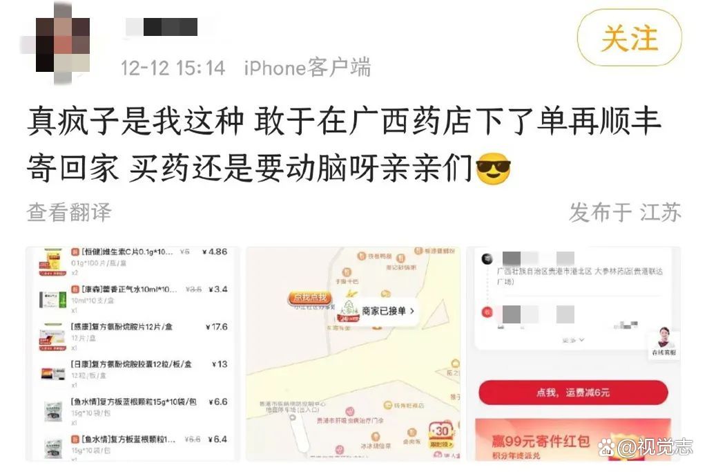 很多人在当地买不到药,就通过某团等跑腿软件,把定位改到广西、新疆、西藏等地,在当地下单,再叫快递发到自己的所在地。