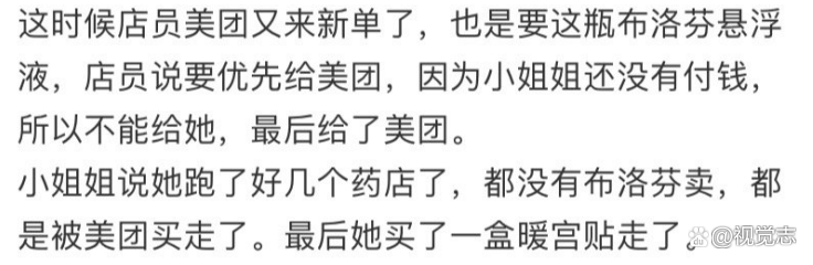 他就在广西小县城,看到一个姑娘来到药店,因为痛经要买药店里最后一瓶布洛芬,药已经拿在手里。