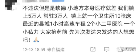 更令人气愤的是,这些人并不是排着队买一两盒,保证自己所需,很多人几十盒几十盒地买,拿远方同胞可能急需的退烧药来做人情。