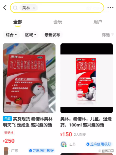 另一边,是在二手平台上,平时卖二三十的小儿退烧药身价暴涨。