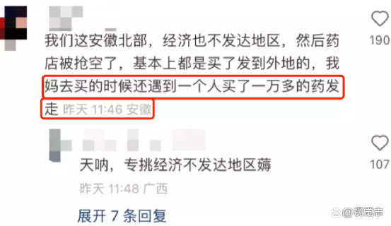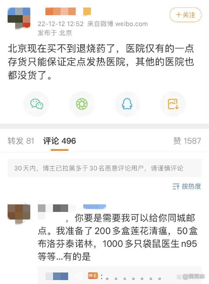 之前有博主说北京的退烧药告急,底下就有人洋洋得意地晒出了自己的“存货”。