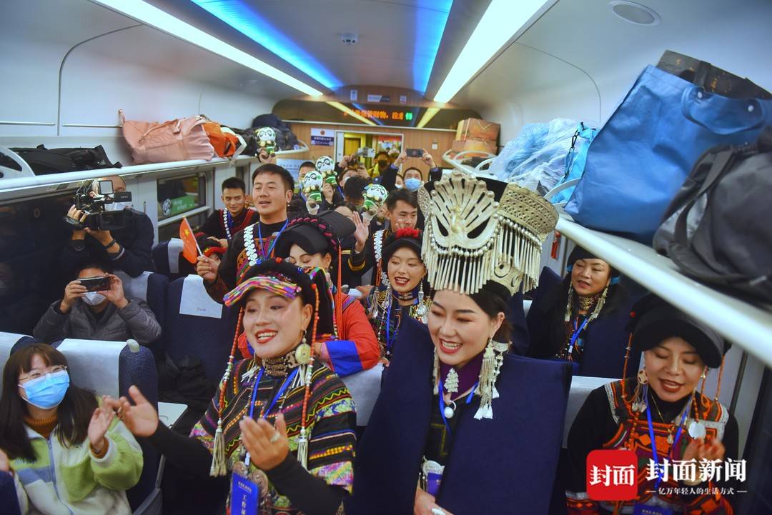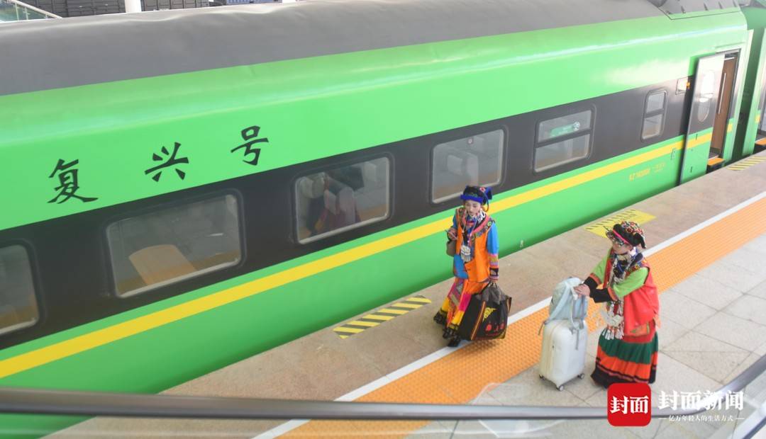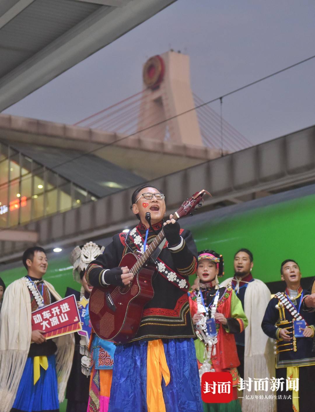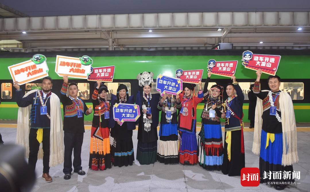 新成昆铁路首发列车满载旅客,一路载歌载舞向大凉山前进,经过2小时55分的旅程,到达西昌。