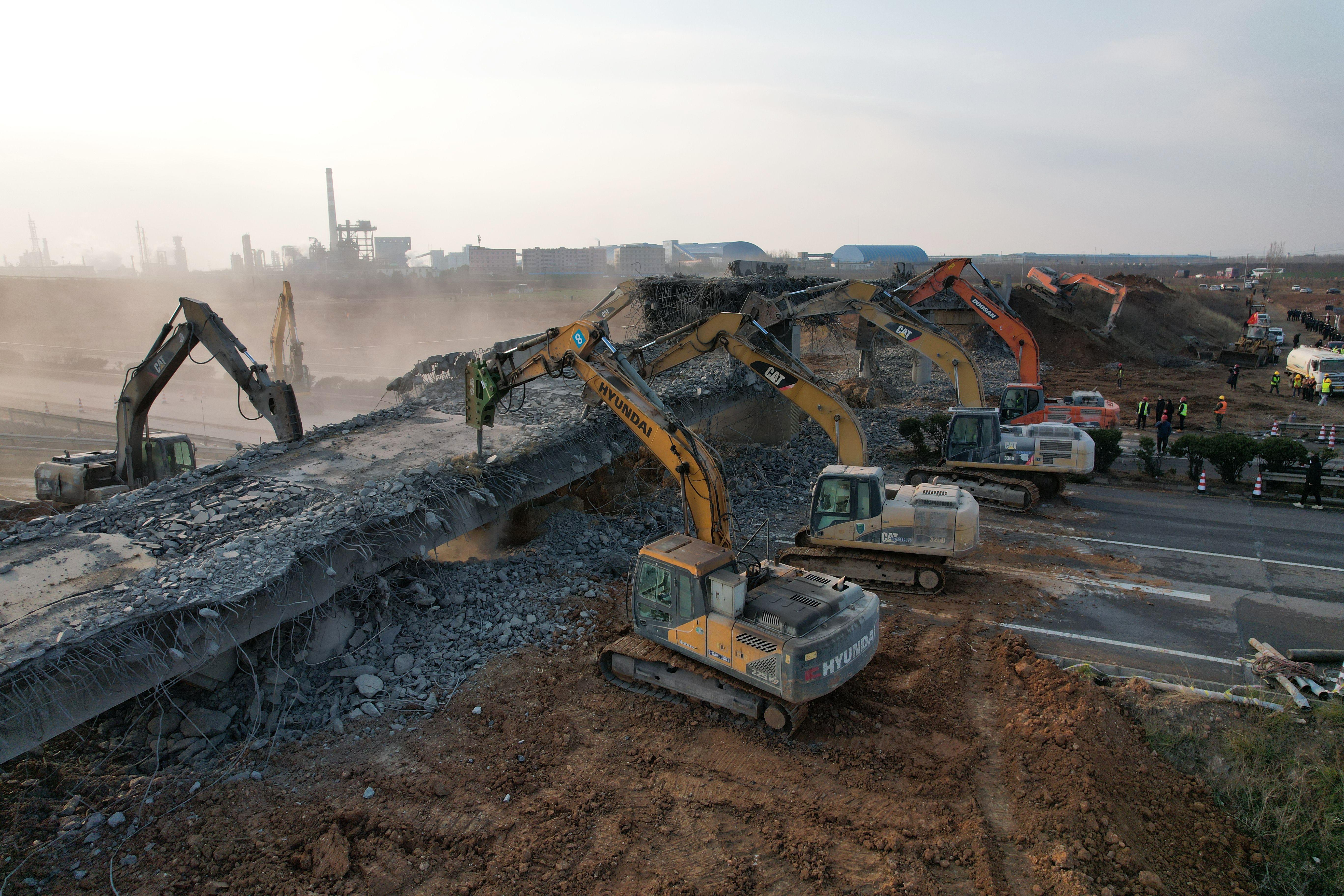 12月26日上午8时,宁洛高速公路宝丰收费站至小屯收费站全线封闭。随之中铁四局焦唐高速汝方一分部长营街2座上跨宁洛高速天桥拆除全面启动。400余人、机械设备50余台,以最快速度完成人员设备集结,与时间赛跑,争分夺秒地开展天桥破拆、场地清理、交通恢复等系列工作。经过5个多小时的连续作战,2座上跨天桥全部顺利拆除完毕,400余名建设者们用智慧和汗水再一次完美演绎了“中国速度”,进一步打通了制约项目建设的关键“卡口”,为后续施工的有序推进夯实了基础。