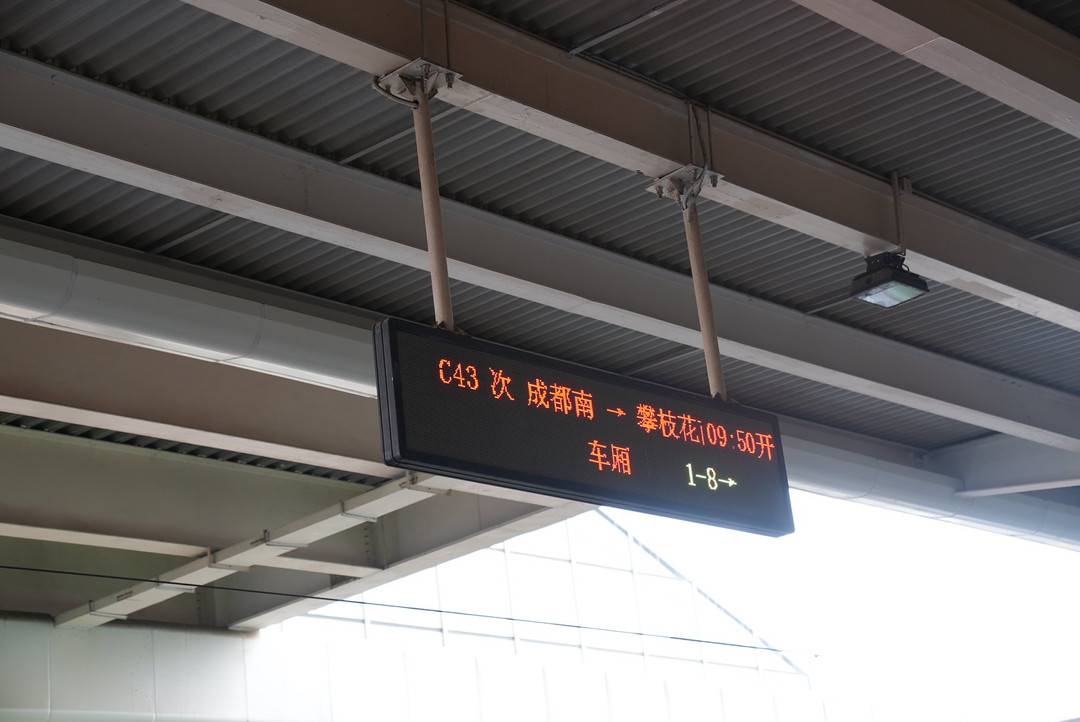 12月26日15时01分,由成都火车南站发出的C43次“绿巨人”复兴号动车组列车,一路向南行驶5小时11分后,到达攀枝花南站。