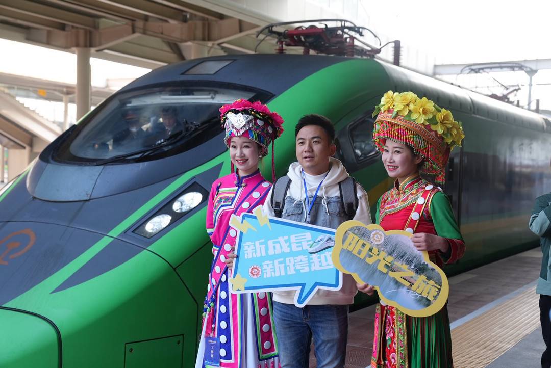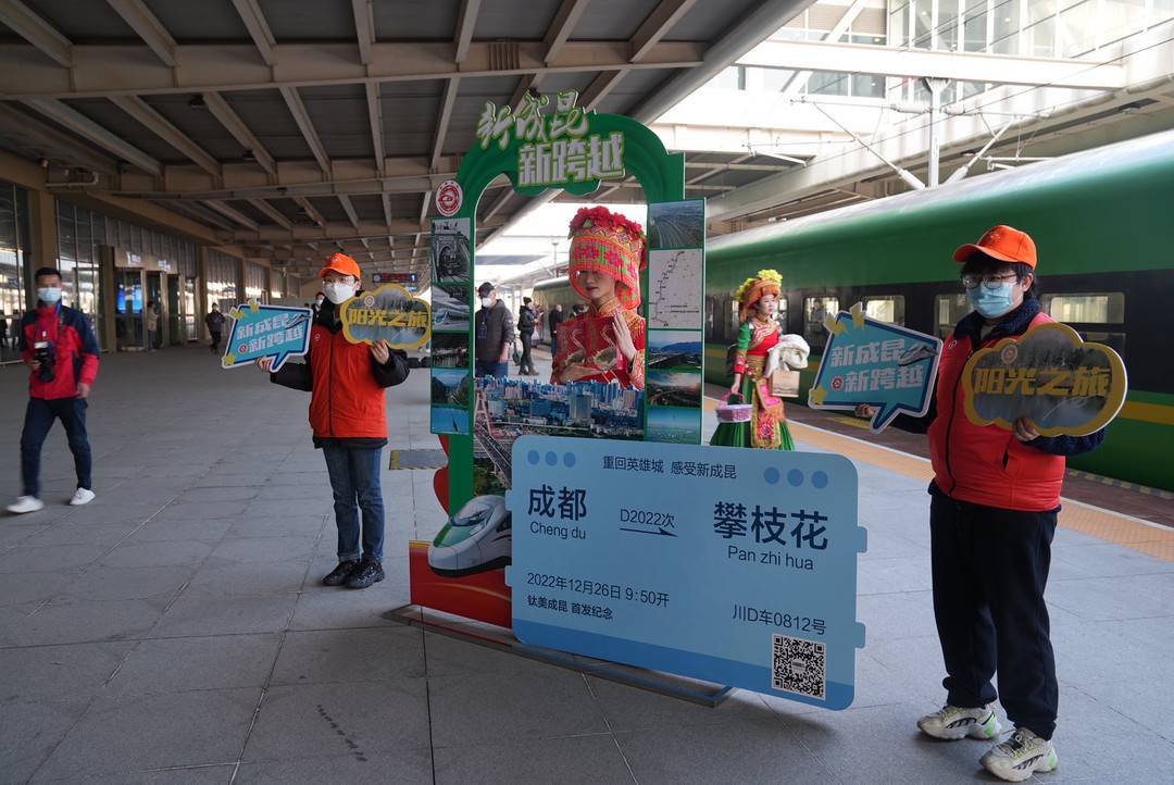 这是新成昆铁路全线贯通运营后,从成都直达攀枝花的首趟载客列车,结束了两地不通动车的历史。