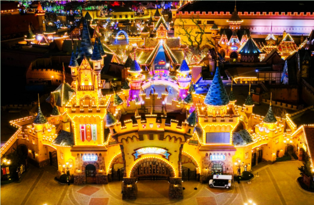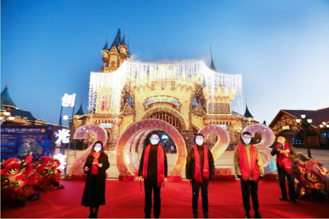 12月23日,济南融创文旅城第二届创·光宴灯光节闪耀开幕,43万平的主题乐园被点亮,一片灯光的海洋将熠熠生辉。
