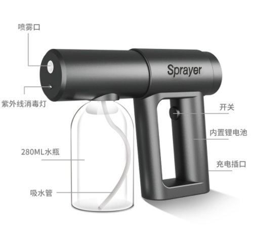 后来小编得到了一款消毒神器——纳米喷雾蓝光消毒枪!