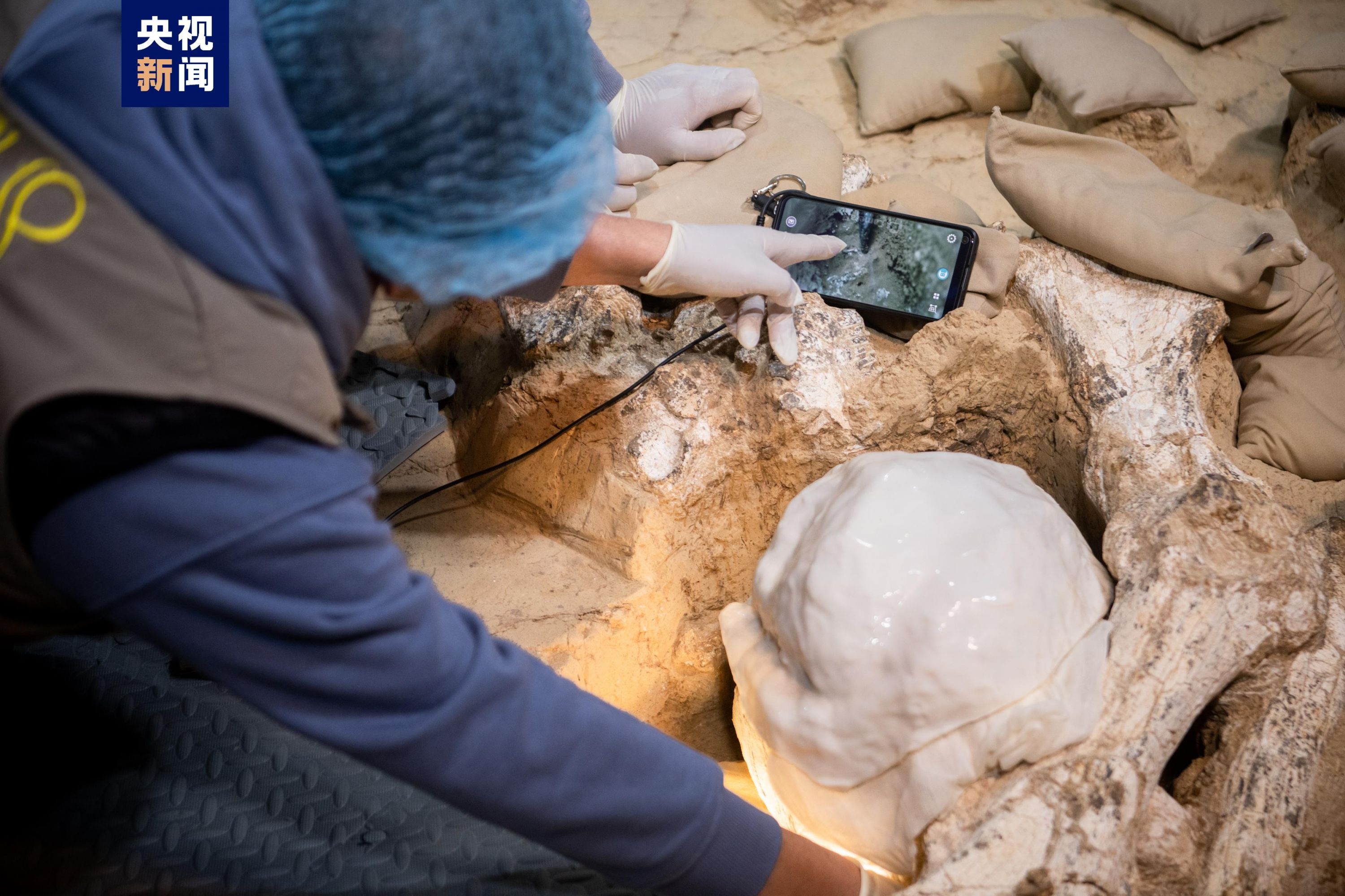为了确保提取工作万无一失,不对化石和周边遗存造成破坏,考古队周密计划、精心组织,依托先进的实验室考古和科技手段支撑,精耕细作,逐步将化石从坚硬的原生土层中剥离。发掘过程中,还为化石量身定制了硅橡胶外套进行保护,并使用了内窥镜、风刻笔等精细化考古装备,让整个提取工作如手术般精准。