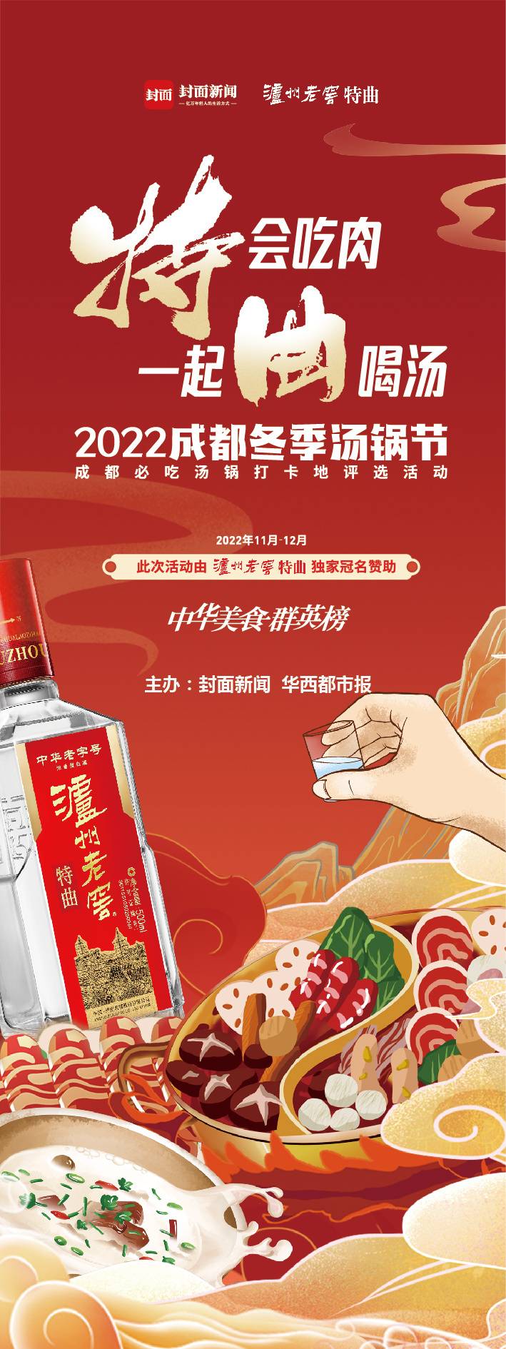 泸州老窖特曲独家冠名赞助的2022成都冬季汤锅节暨成都必吃汤锅打卡地评选活动邀您一起,大口喝酒,大口喝汤!