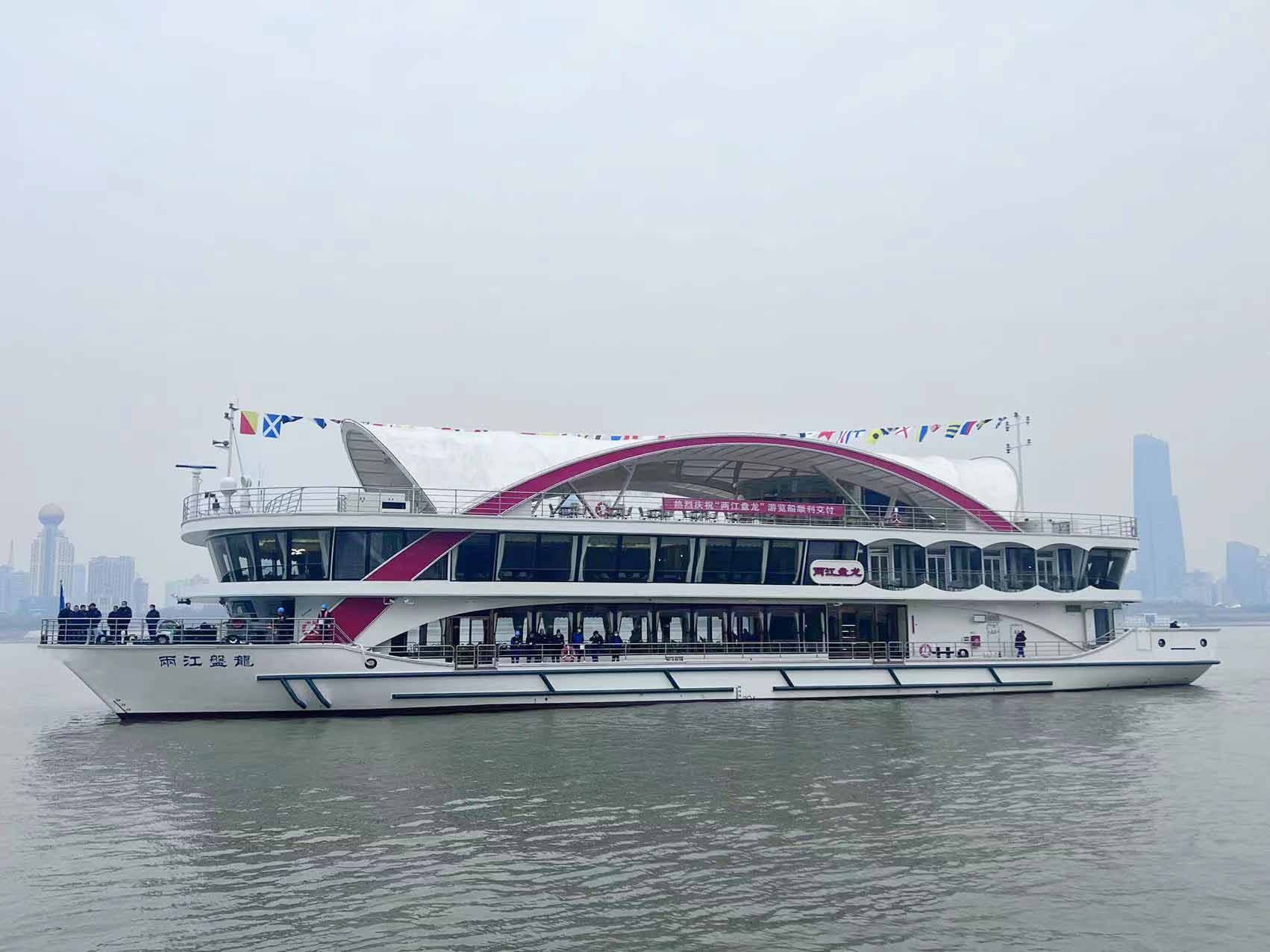 据悉,此前,同为2022年新打造的豪华游船“两江晴川”号已投入运营。与“两江晴川”号主打游览观光不同,“两江盘龙”号主打婚宴、商务、聚会、聚餐、娱乐包船等,配有专业的舞台音响、灯光、LED电子屏等,能满足高端包船的需求,同时具有灵活多变的布置方式、充足的娱乐空间。风格各异的两条船将成为长江上的“双子星”,为武汉两江游览注入新鲜血液,也为游客提供更有吸引力的旅游产品和服务。