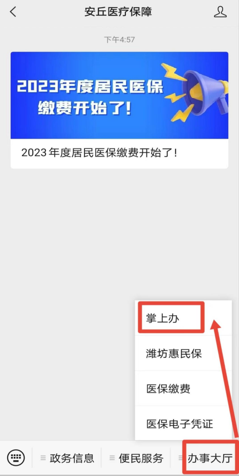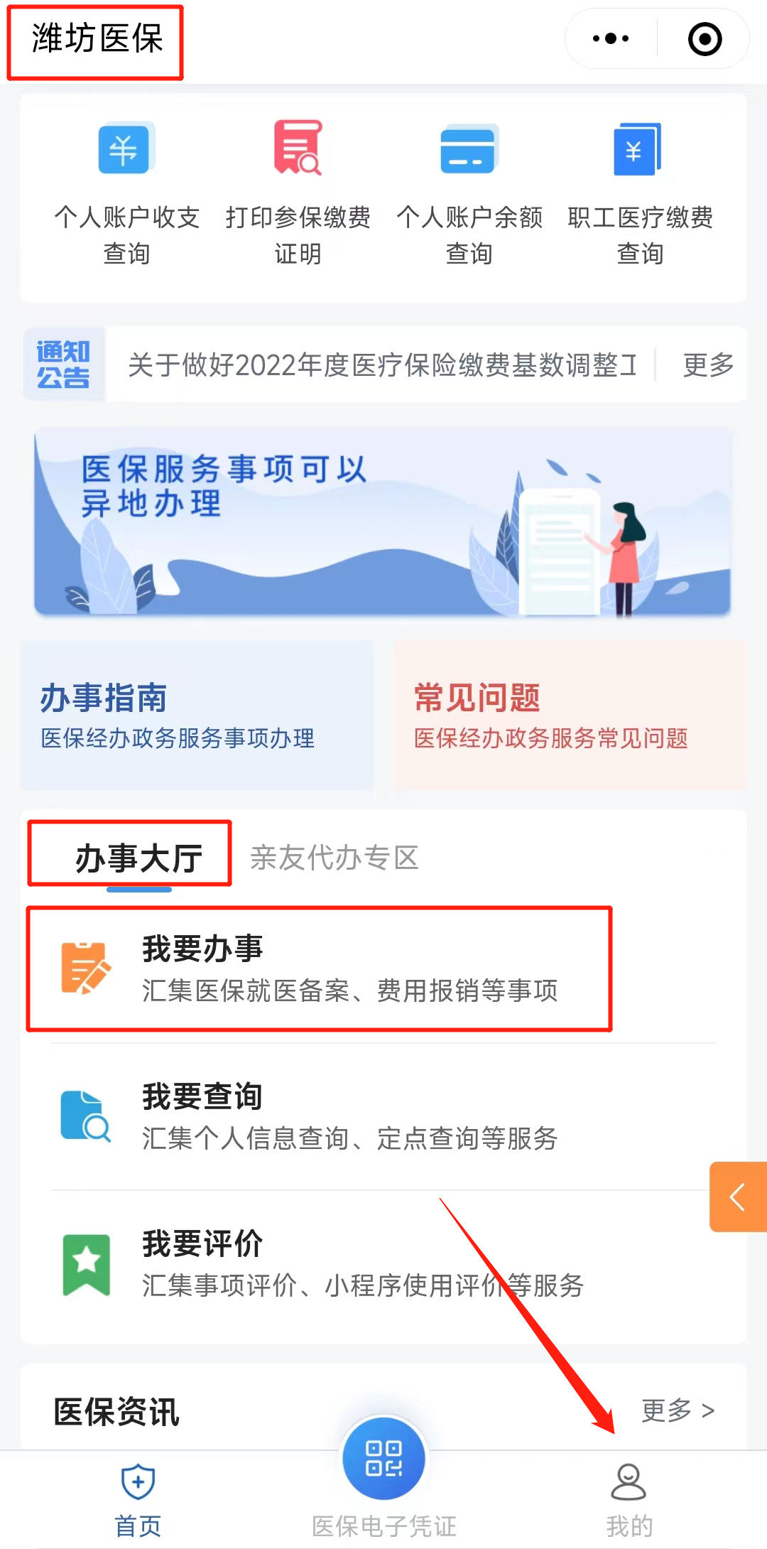 1、线上登记渠道:关注“安丘医疗保障”公众号,办事大厅→掌上办→潍坊医保→办事大厅(右下角“我的”绑定个人信息登录)→我要办事→居民医疗参保登记。
