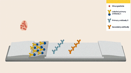 如果溶液中含有病毒抗原,抗体1就会聚集在T线处,显示第一条红线;无论溶液中是否有病毒抗原,抗体1都会聚集在C线处,形成第二条红线,这就是“一条红线是阴性,两条红线是阳性”的原因。