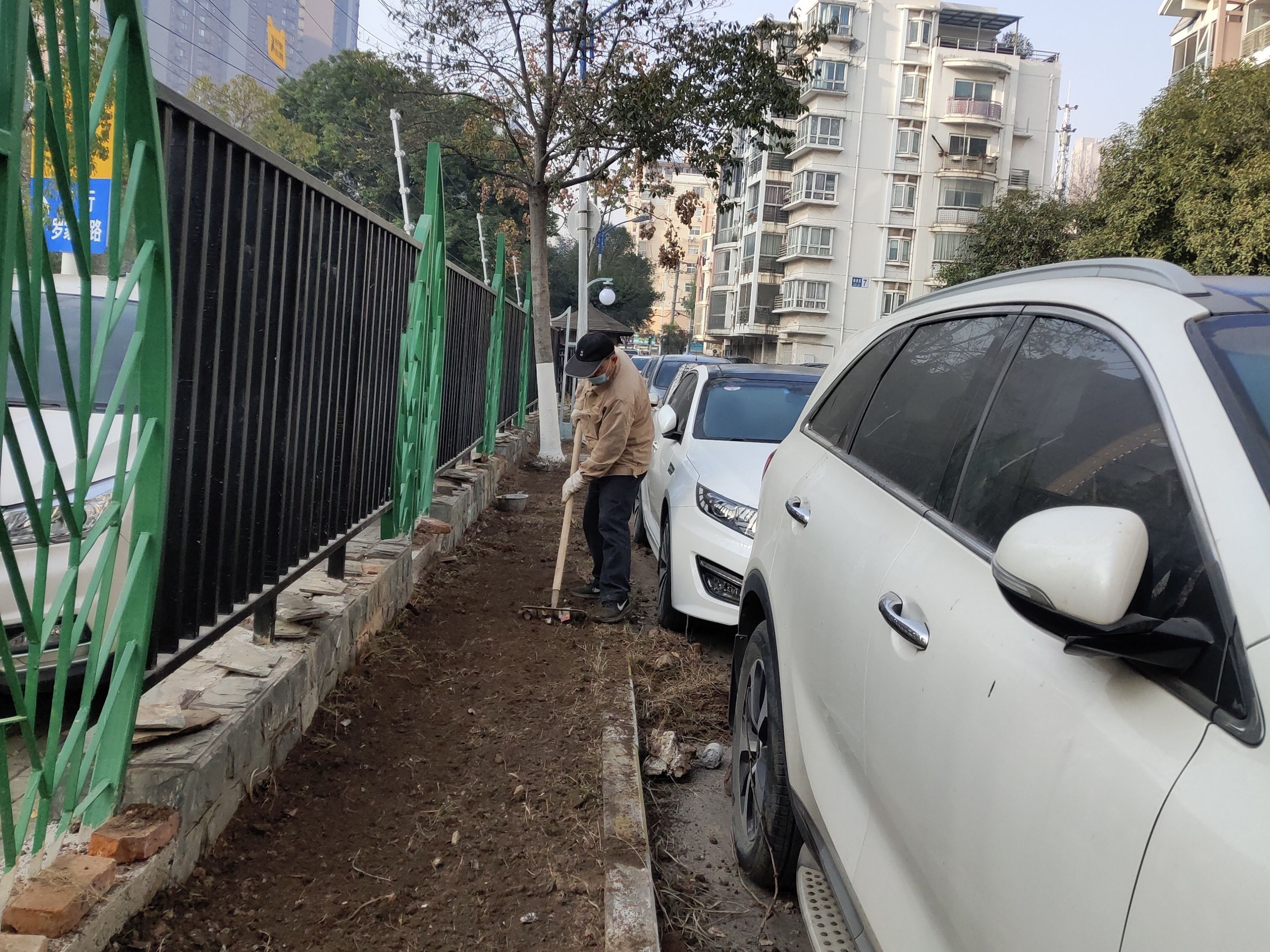 物业工作人员正在清理安装路灯的地面。通讯员供图