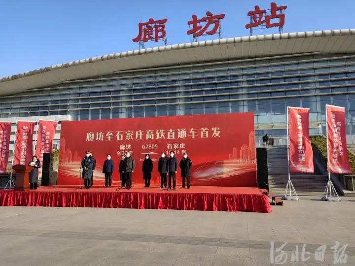 从今天起,廊坊市民可从市区乘坐高铁,直达省会石家庄啦!上午9时32分,从京沪高铁廊坊站始发的G7805次列车正式开行,将于12:14到达石家庄站,运行时间约2小时42分。从廊坊市发改委了解到,自2022年12月26日起,全国铁路实行新的列车运行图,廊坊主城区开行至省会石家庄的高铁直通车,进一步强化廊坊市与省会的沟通联络,满足市主城区居民出行需求。