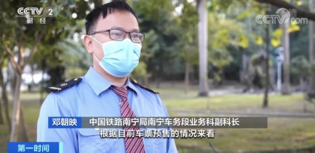 中国铁路南宁局南宁车务段业务科副科长 邓朝映:根据目前车票预售的情况来看,春运首日客流增长明显,到达客流量是日常客流量的3倍,旅客主要出行的方向是去往成都、上海、广州等地。