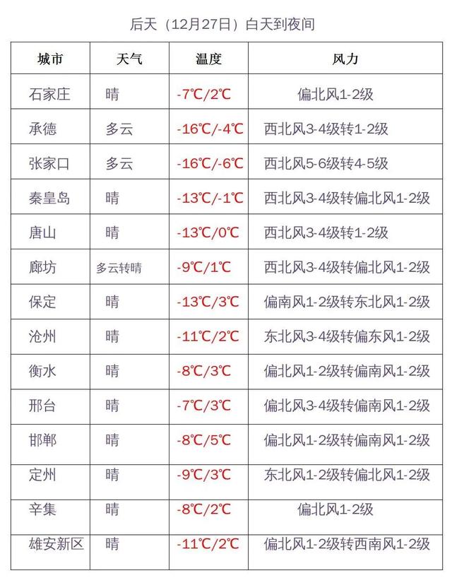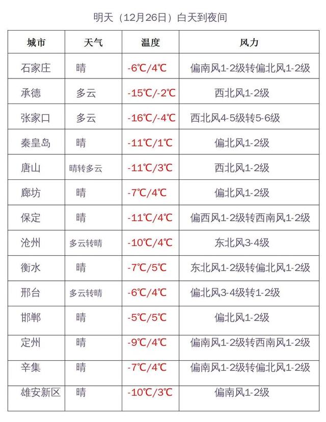河北省气象台2022年12月26日17时发布天气预报: