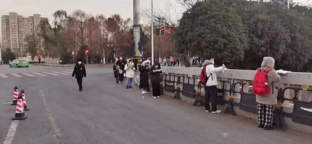 食堂门口有秩序排队、贴心路牌、暖心姜汤