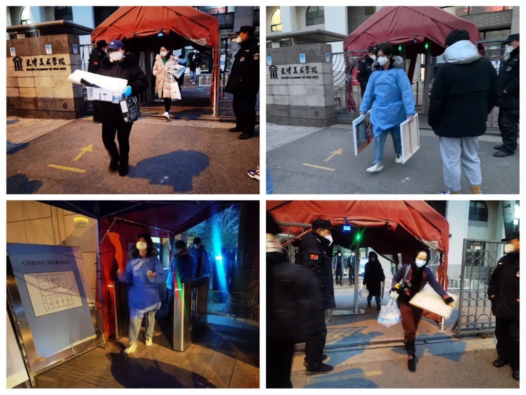 今年在我校参加研究生招生考试的考生总人数超过1800人。学校在天纬路校区、志成路校区以及天津市美术中学设立3个考点、120余个考场,共计300多名工作人员参与本次考试工作。12月24日,考试正式开始,来自全国各地的考生们怀揣着对天美的期待进入考场。为维护考场周边环境秩序,保障考生安全,学校积极与属地公安、交通等部门沟通协调,做好疫情防控和应急安全等具体工作。教务处(招生工作办公室)对考务流程全程把关,细化考试各环节。保卫处工作人员和党员突击队队员在考试期间做好交通疏导工作,核验考生身份,测温、佩戴口罩并发放考试专用手环后进入校园。校医务室随时待命,对考试期间考生出现的身体突发情况做出应急处置。学校在每间考场都配备了防疫暖心包,内含N95口罩、手部消毒剂和75%酒精棉片。基建与后勤管理处对各楼宇供水、供电、考场内设施进行拉网式排查,并为全部工作人员提供餐食。网络安全和信息化办公室提供技术支持,监控屏幕实现全覆盖,为考生创建了一个温馨、舒适的考试环境。学院各部门通力合作,监考员、流动监考员严格遵守纪律要求,做好考场监督与考生服务,全力保障本次考试平稳顺利进行。