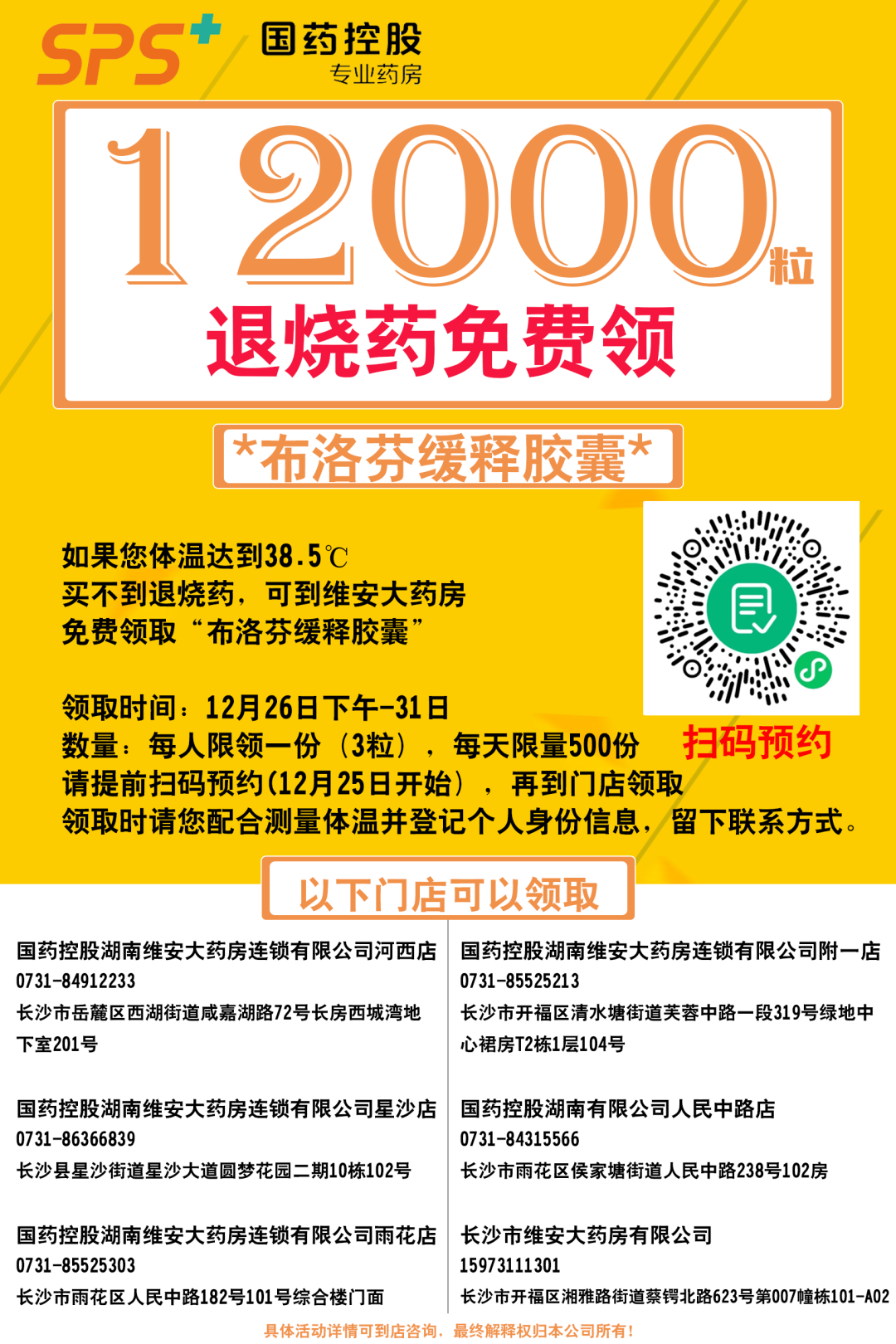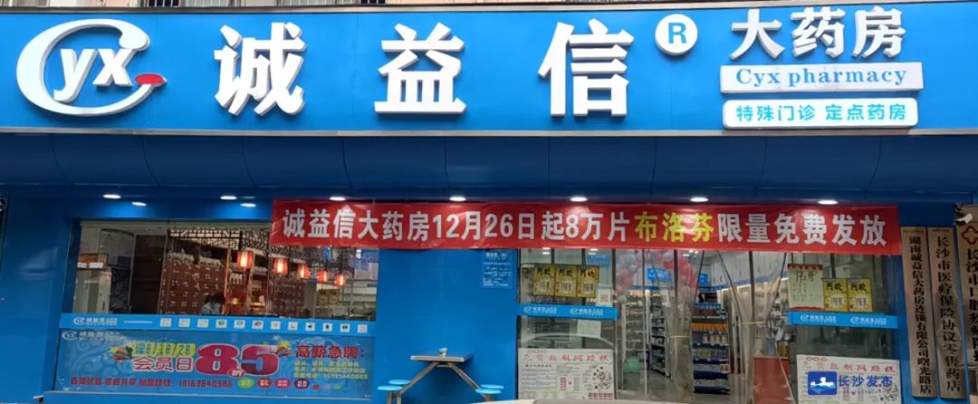 国药控股维安大药房积极协调,紧急调度了一批布洛芬缓释胶囊(退热镇痛药),12月26日开始在旗下长沙各药房免费提供。