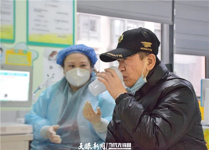 市民贾先生正在进行“吸入式”新冠疫苗的接种