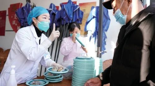 浙江台州市路桥区医疗战线的党员先锋队和志愿者正在对群众进行问诊、测体温、配药,给予健康指导。孙伟健 农民日报·中国农网记者 朱海洋 摄
