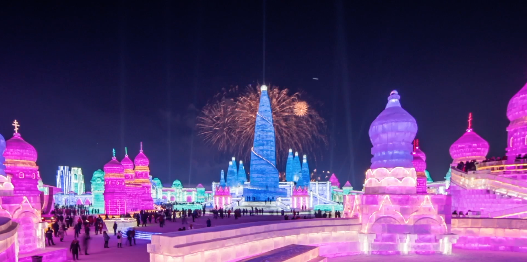 普普通通甚至曾让人望而却步的大冰块,在能工巧匠的手下被赋予了灵魂,灵动的造型,装点上璀璨的光影,开启了冬日童话的梦幻盛会。
