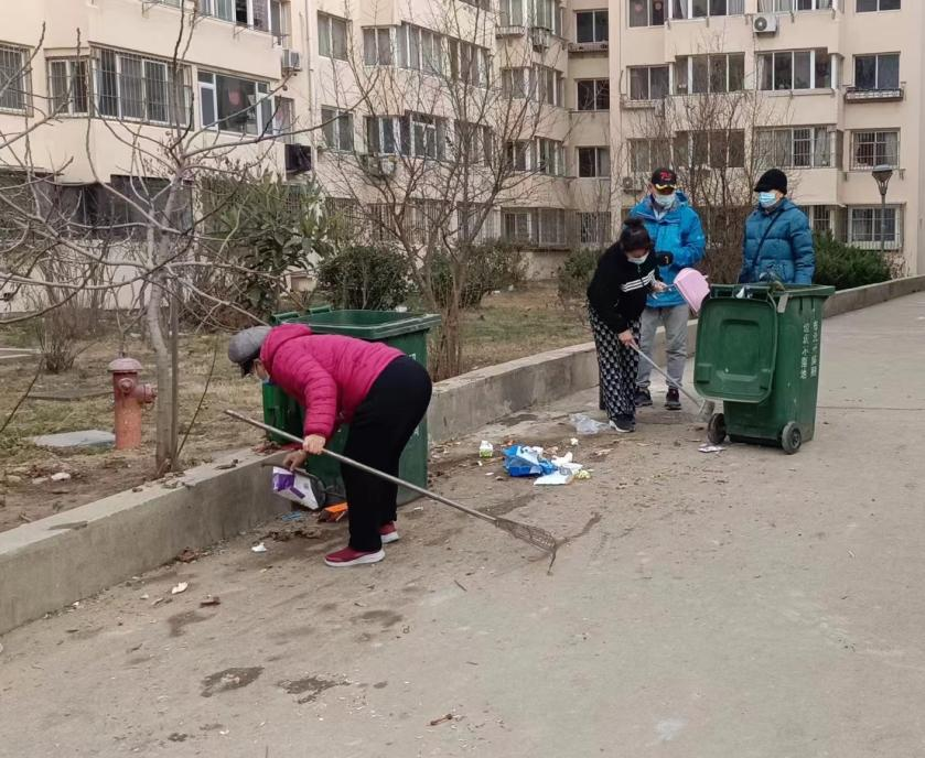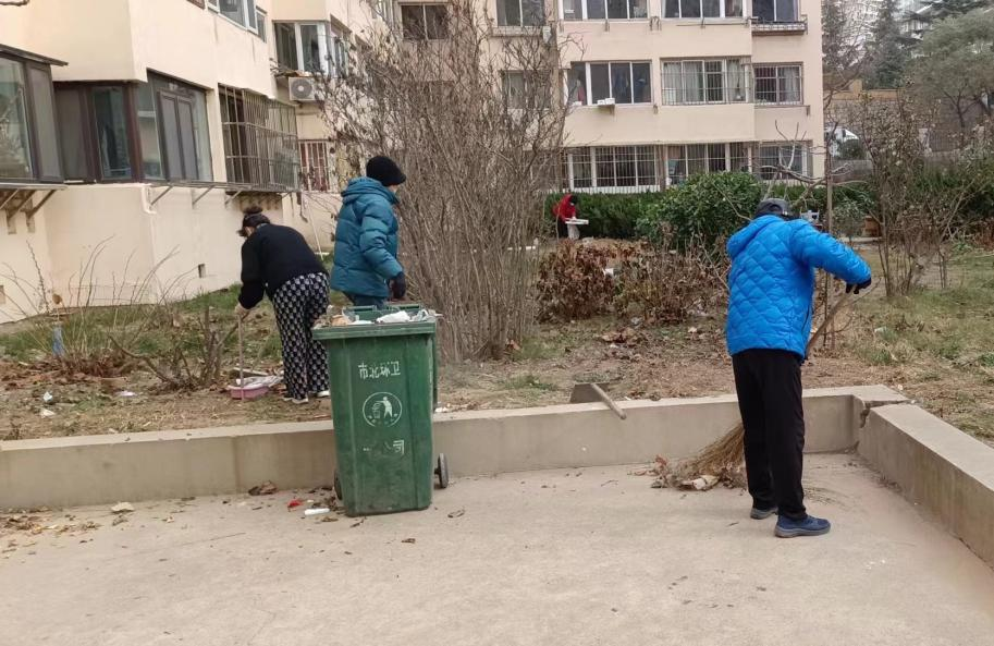 近日,由于道路硬化工程,院内的几个垃圾存放点垃圾堆积,也有不少建筑垃圾被大风吹到绿化内,大大影响了小区环境。一大早,不顾凛冽的寒风,网格党支部书记和几位楼组长,还有不少居民主动参与,对路面卫生和绿化进行清理清扫,几位居民们也自发对垃圾桶周边进行了清理,共同让和谐家园焕发了新生。