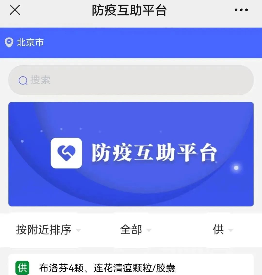 第二步,点选按附近排序或按时间排序,通过筛选信息,找到更近的供药者或最新的供药信息。