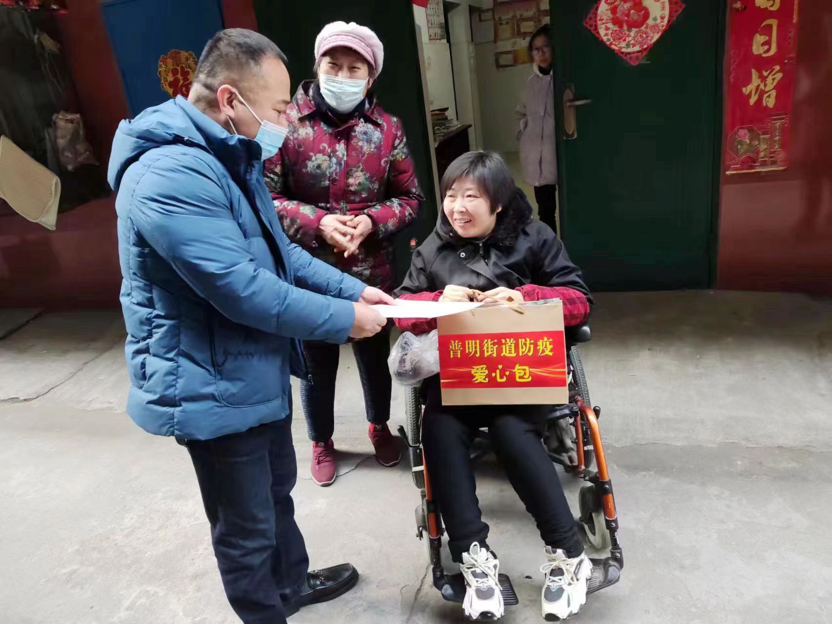 为落实国务院联防联控机制关于重点人群防疫服务保障工作的要求,近日,绵阳高新区普明街道面向购买医药物资不便且又有实际需求的低保户、特困户、残疾人、空巢独居老人、孤困儿童等特殊困难群众,开展“爱心防疫健康包”派发活动。在上门赠送“健康包”的同时,进行防疫科普宣传,切实保障重点人群身体健康。