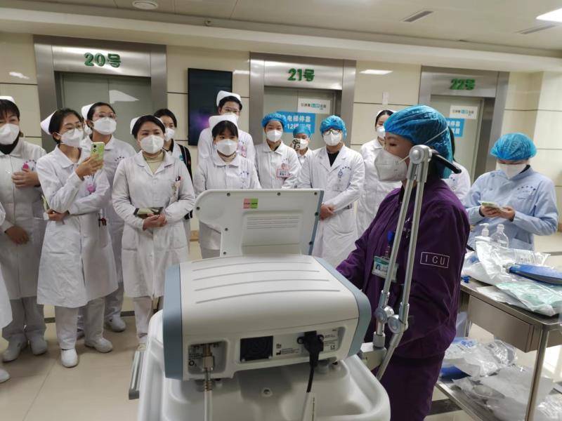 “目前重症医学科处于满负荷运转,大部分医护人员十几天都没有好好休息过。医护人员感染后,熬过最难受的一两天,就立即返岗,谁也没有抱怨!”重症医学科主任陈丽介绍,疫情初期重症医学科就强化重症医疗资源储备,做好重症医学专业相关医护人员队伍准备,除坚守自身阵地外,还选派6名医护人员支援其他科室监护室,切实提升全院重症医疗服务能力。全院ICU病房进行统筹安排,加快可转化ICU病房改造,目前已将20多个普通病房改造成重症病房,全院呼吸机等急救设备受患者服务中心、医务部及医院总值班统一调配。