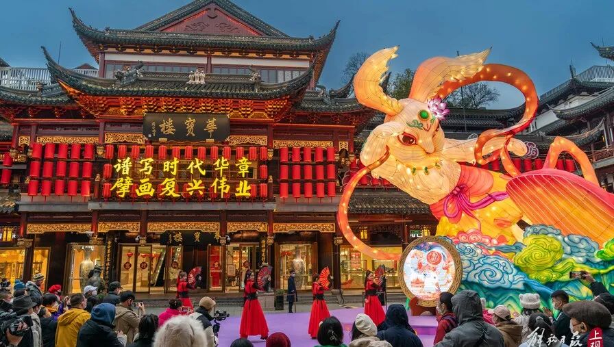 12月26日傍晚,随着豫园中心广场“玉兔东升、鲲鹏万里”的主灯组点亮,2023豫园迎新年活动正式启幕。今年豫园灯会的时间跨度将从12月26日一直延续到2023年2月15日。
