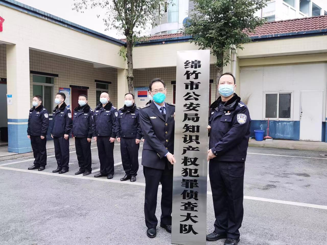 12月26日,四川省绵竹市公安局举行知识产权犯罪侦查大队挂牌仪式。绵竹市公安局党委副书记、政委陈建雄,市市场监管局党组成员、副局长刘少华共同为“知识产权犯罪侦查大队”揭牌。市公安局党委委员、副局长曾祥曦出席仪式,食药环侦大队全体民辅警、市场监管局知识产权监管股工作人员参加仪式。