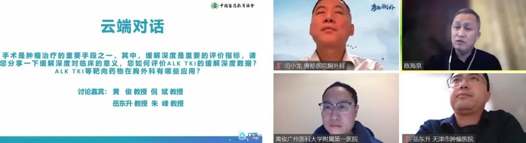 复旦大学附属肿瘤医院陈海泉教授、广州医科大学附属第一医院黄俊教授、苏州大学附属第一医院倪斌教授、天津市肿瘤医院岳东升教授、安徽省胸科医院朱峰教授参与了云端对话的学术讨论。
