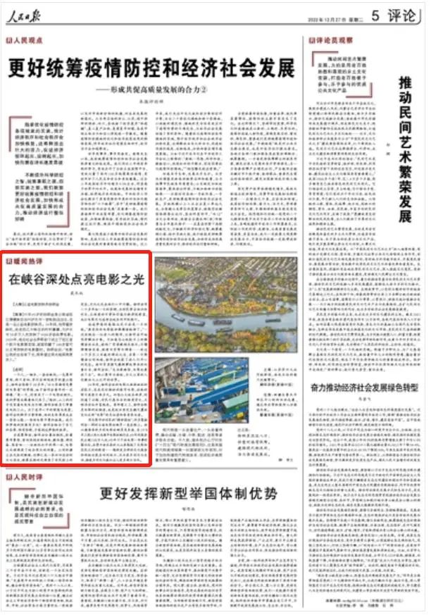 12月27日出版的人民日报5版刊发题为《在峡谷深处点亮电影之光》的评论文章,点赞云南怒江泸水市45岁公益电影放映员杨明金。