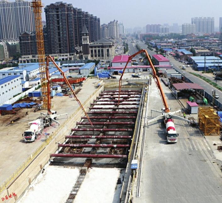 2017年7月19日,地铁2号线化章街最后一块顶板浇筑。山西日报客户端
