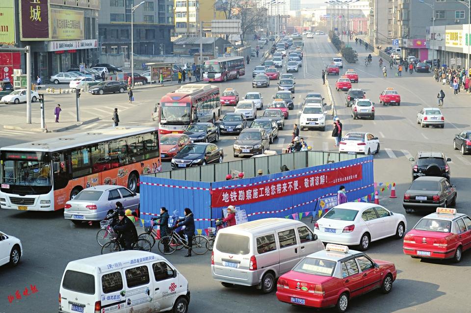 2012年12月28日,双塔寺街与解放路十字路口,太原地铁2号线勘察施工。