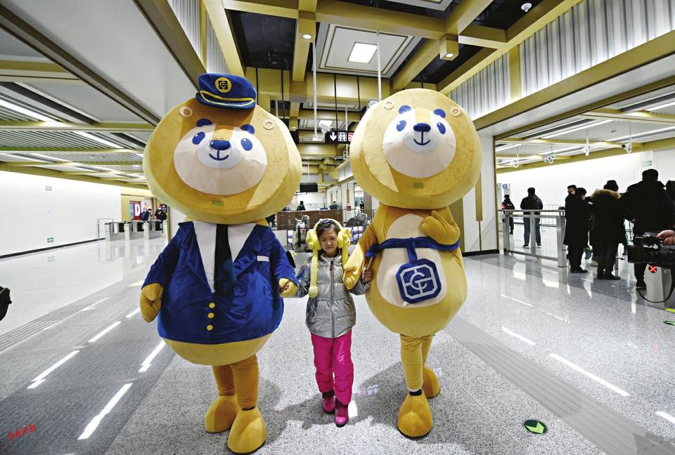 2020年12月26日,小朋友与地铁吉祥物合影。
